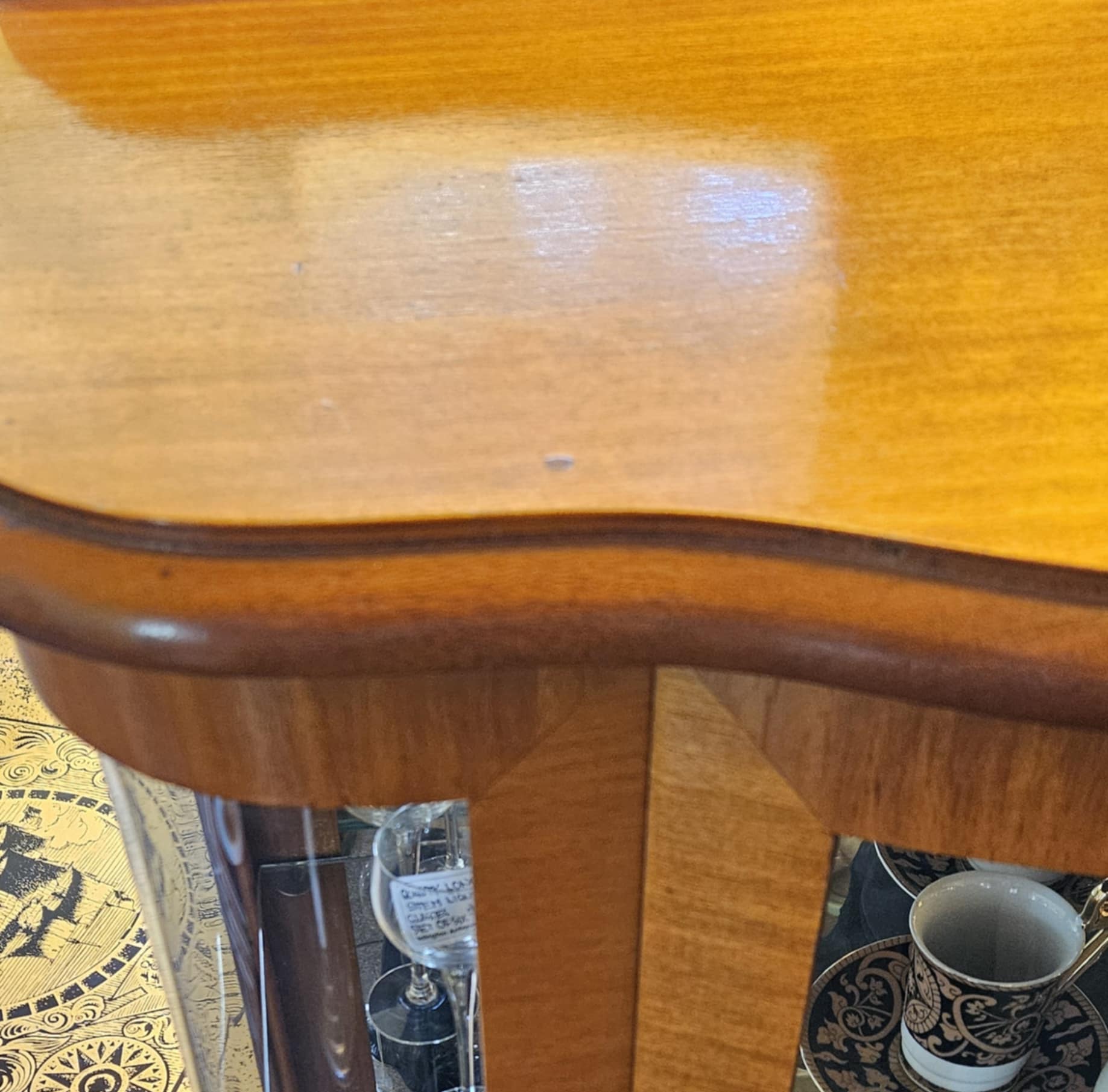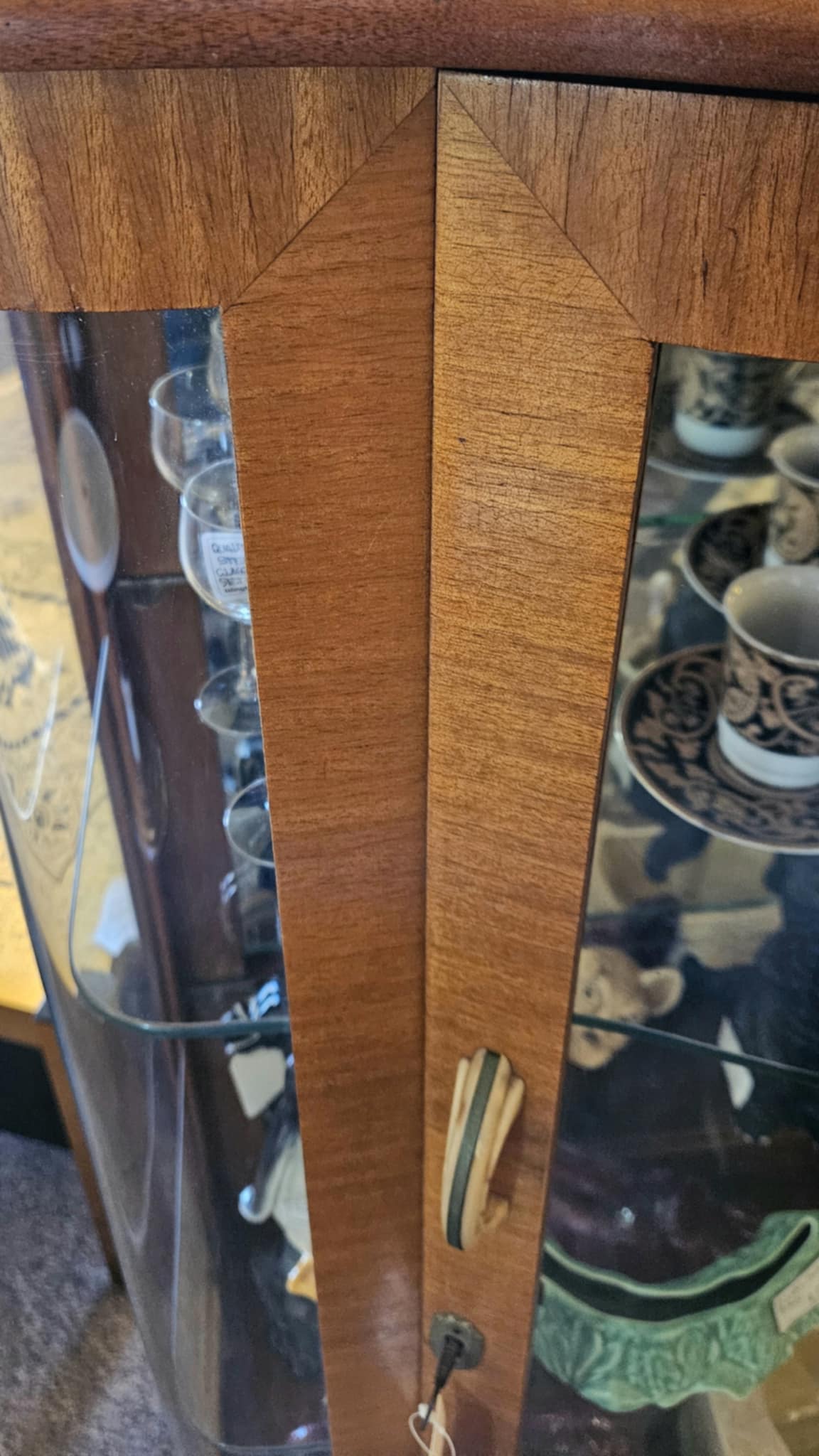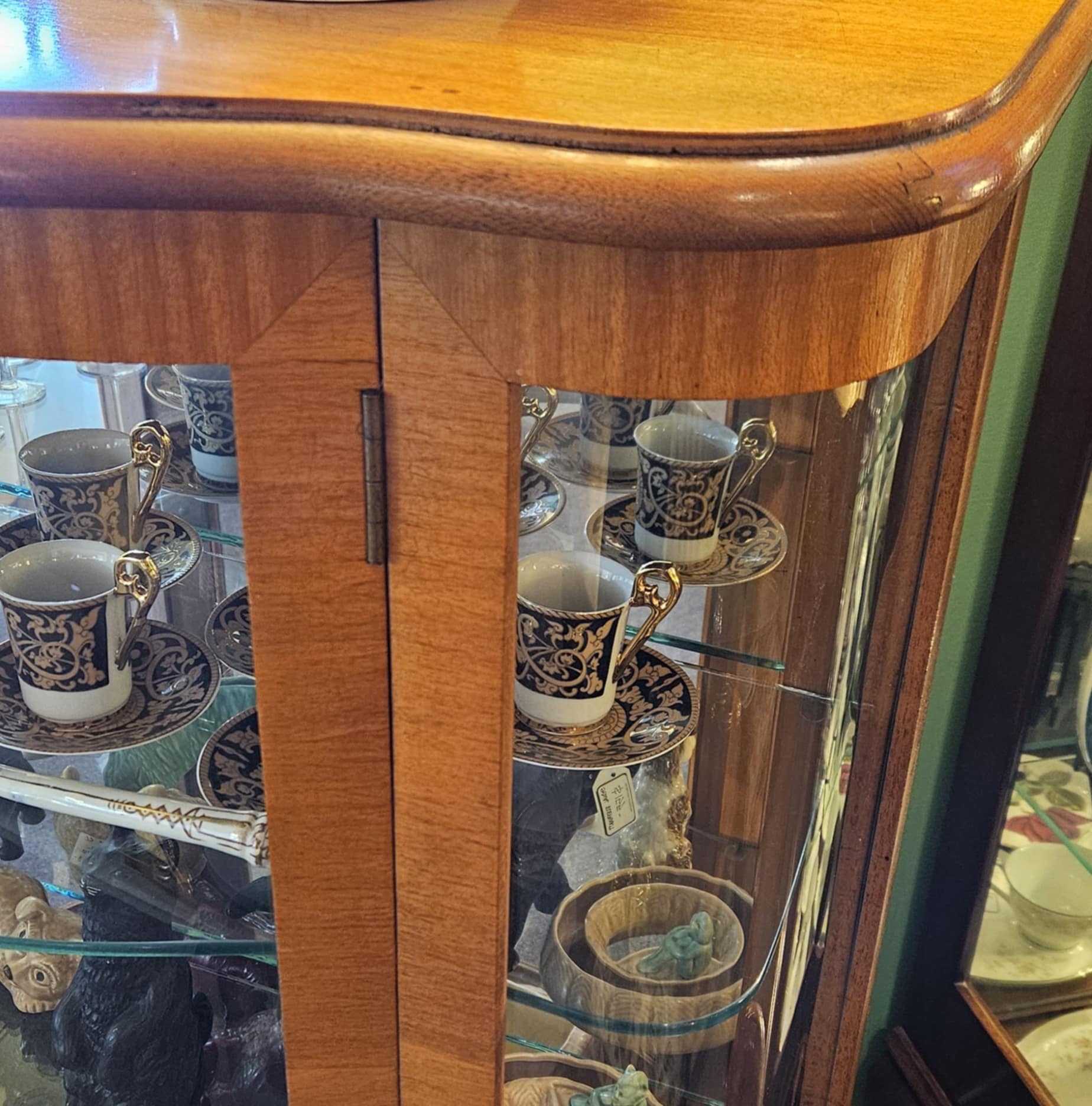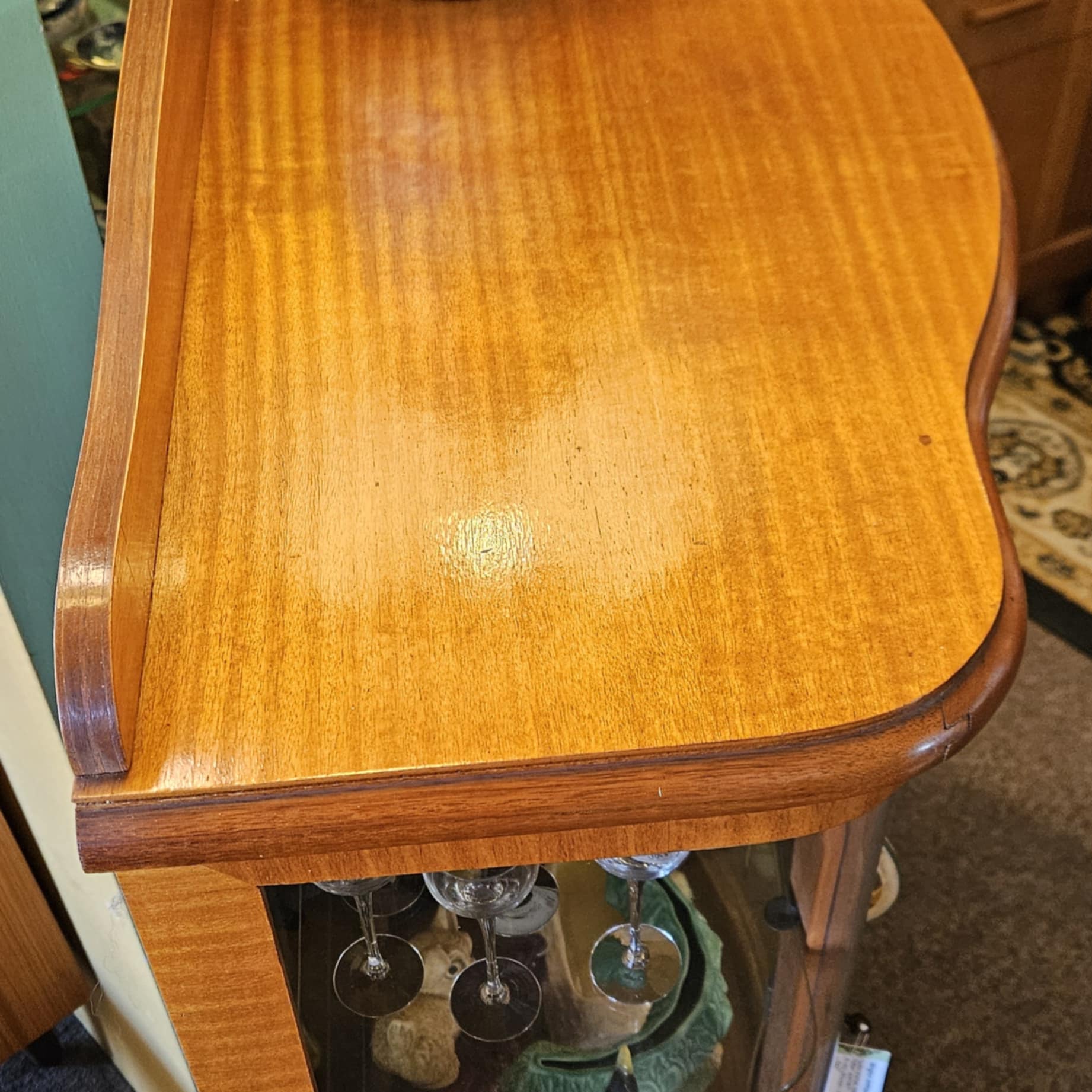 1950’s Australian made blondwood maple China cabinet in good original condition. Mirror back, glass shelves.