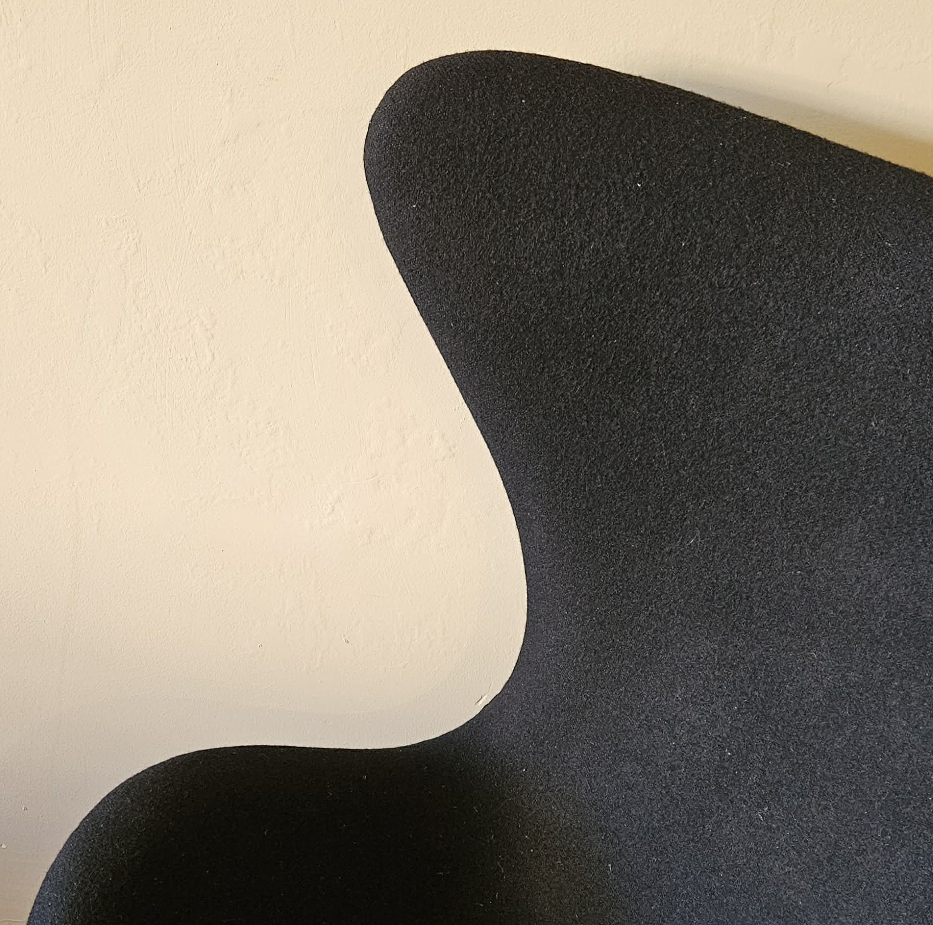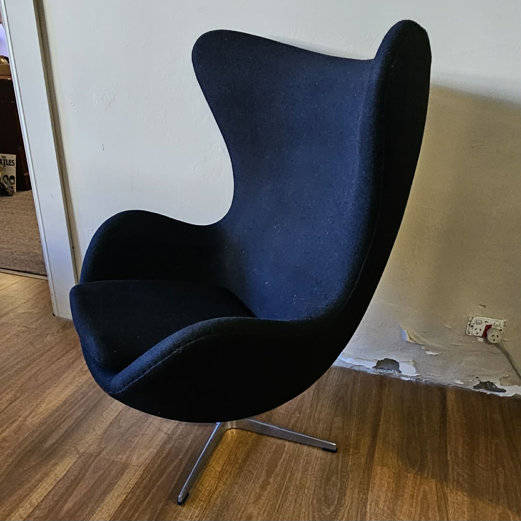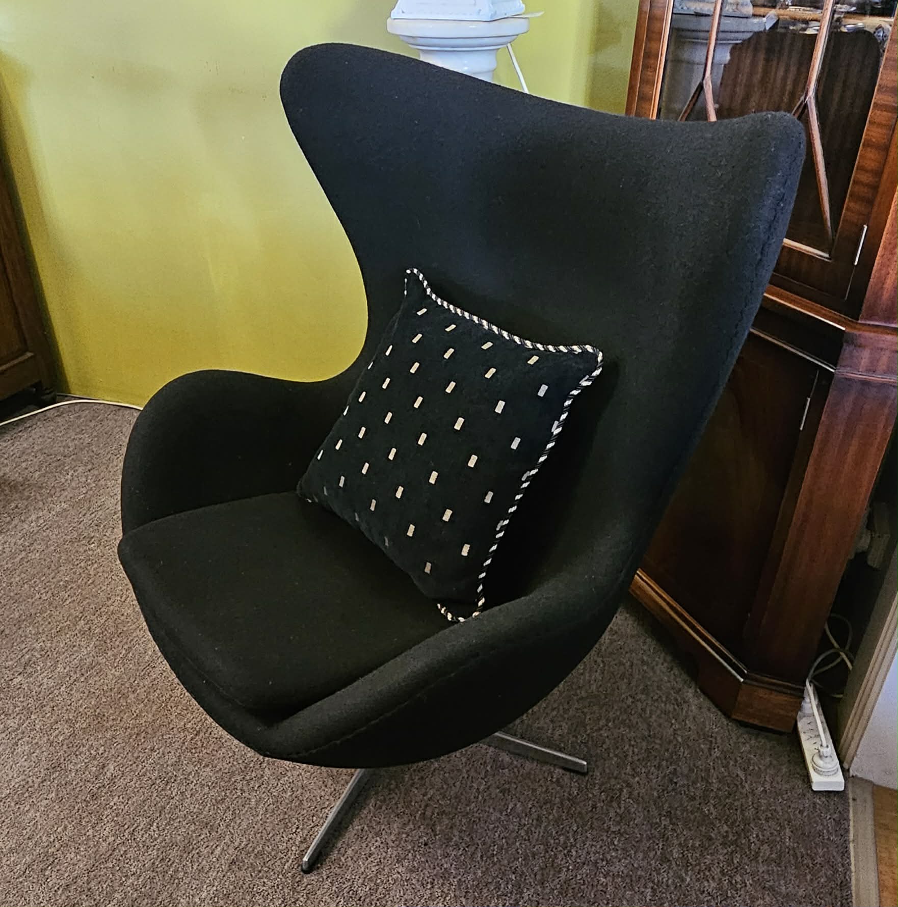Arne Jacobsen style retro swivel egg chair in good original black wool blend fabric.