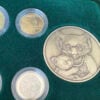 1998 Australian proof coin baby set in excellent condition featuring individually packaged coins $2 $1 50c 20c 10c and 5c and also a burnished sterling silver Koala medallion where the baby’s name can be engraved on the back. The set is complete with family tree card to complete baby’s details.