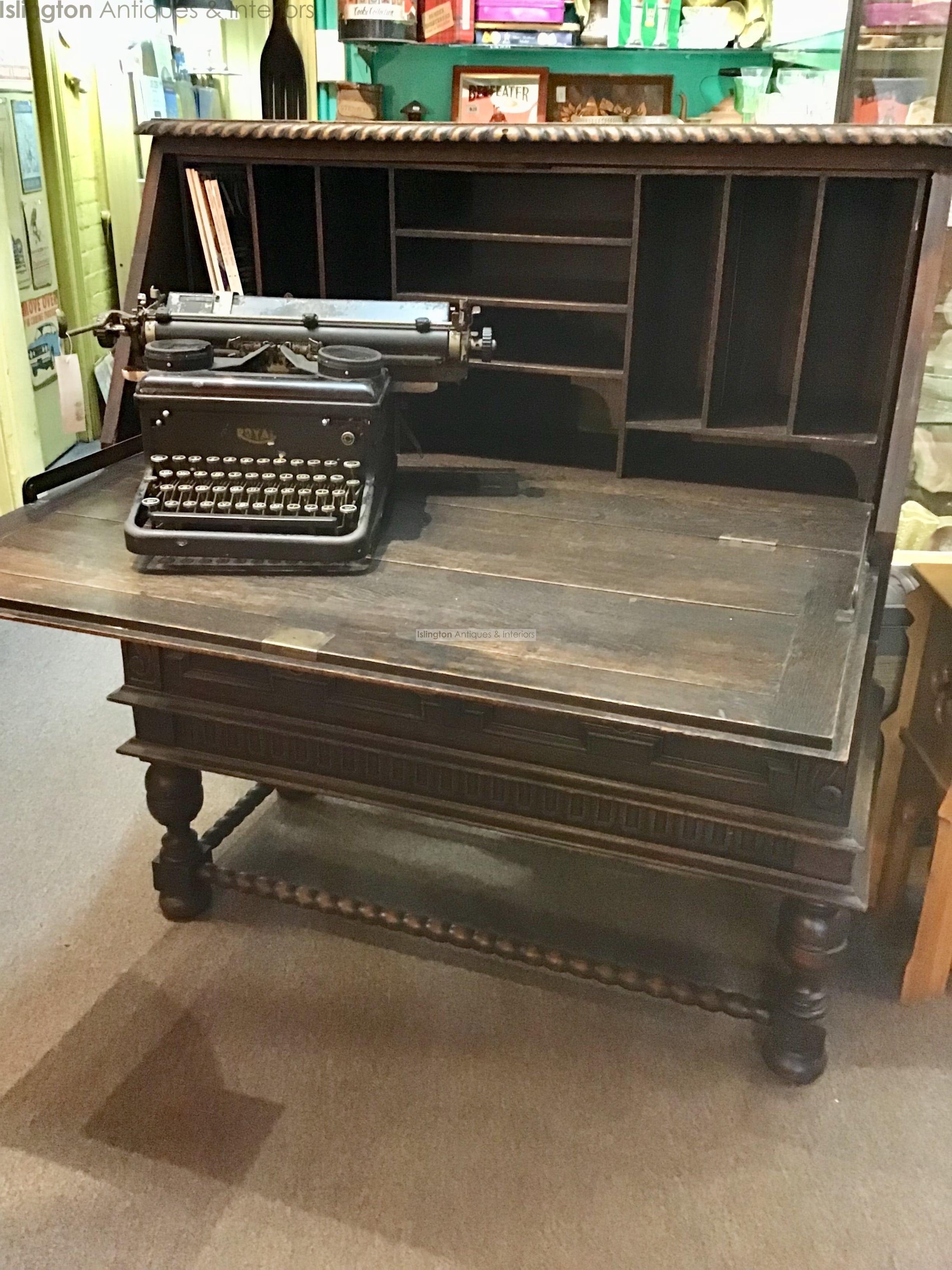 The desk is set upon four bulbous legs with barely twist stretchers.