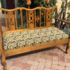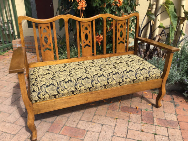 Australian made Queensland maple federation style slat back lounge settee padded seat sitting on cabriole legs.
