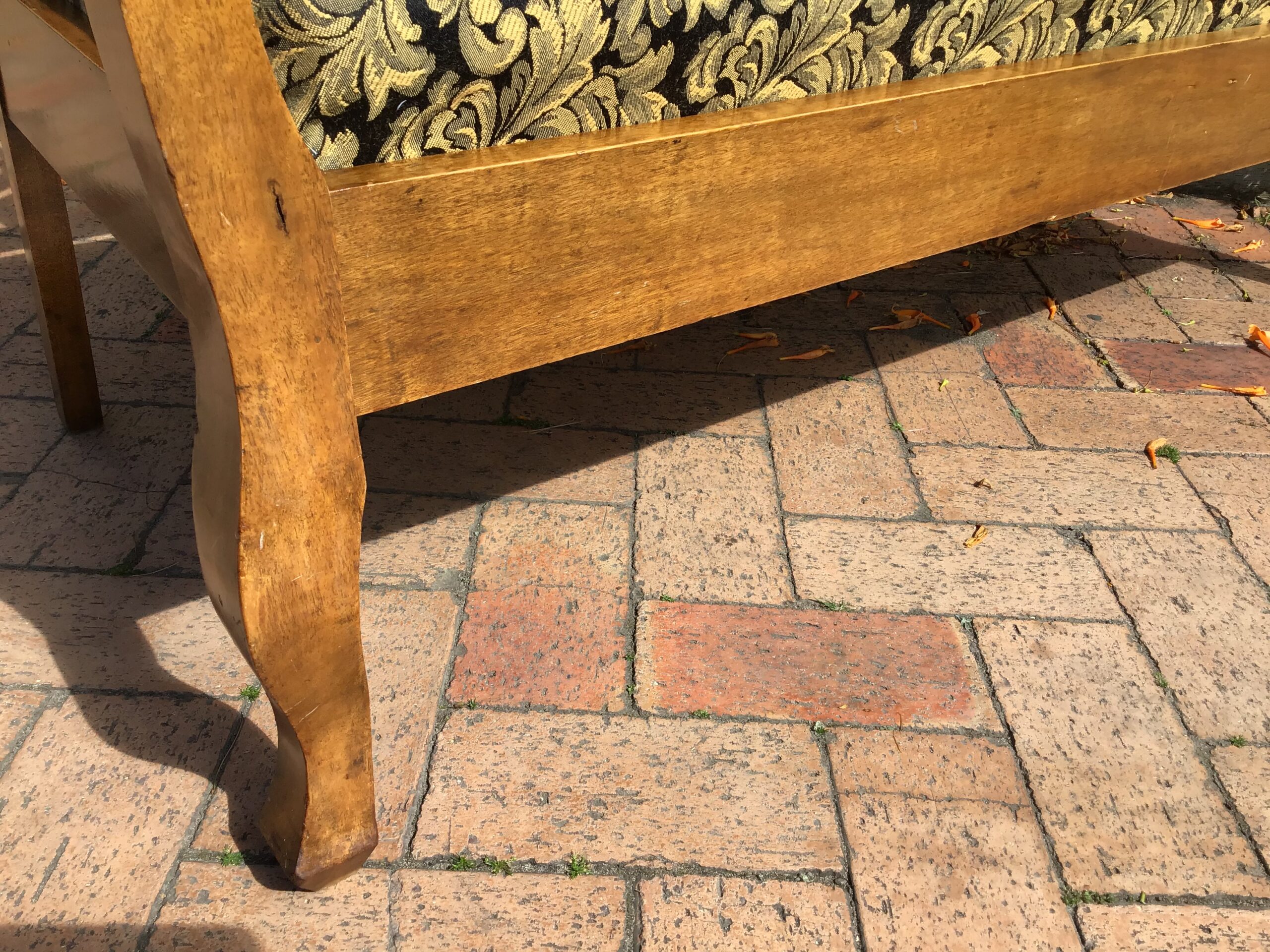 Australian made Queensland maple federation style slat back lounge settee padded seat sitting on cabriole legs.
