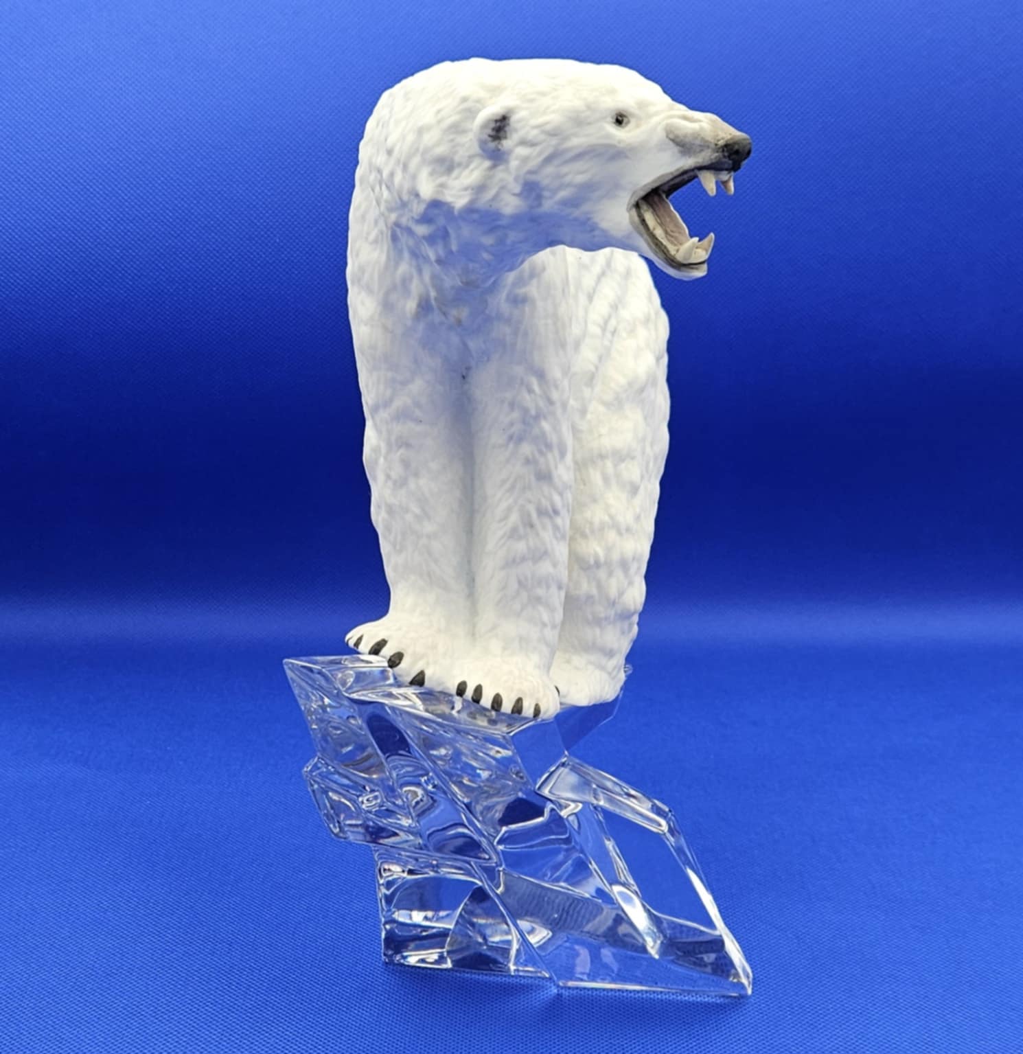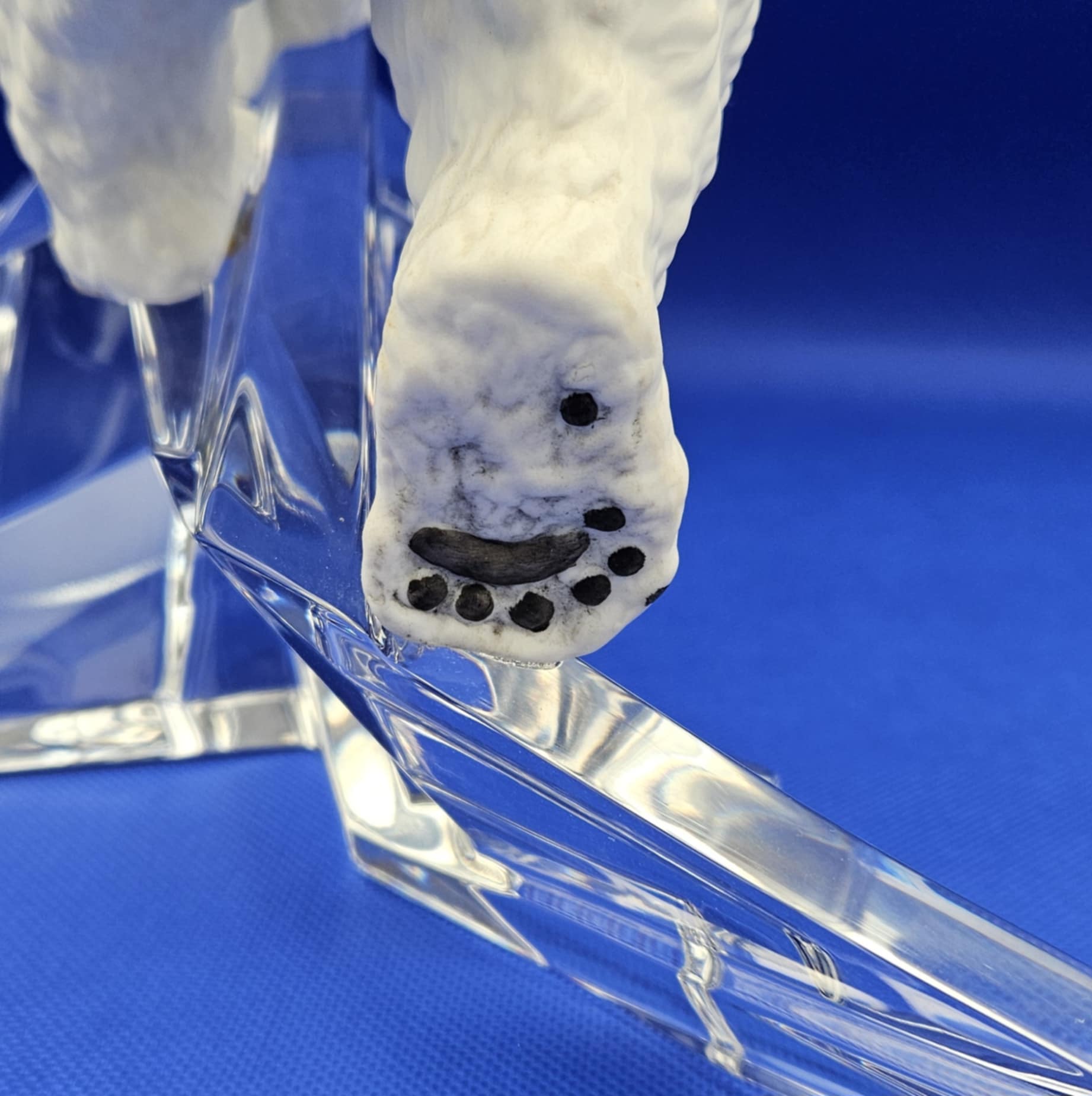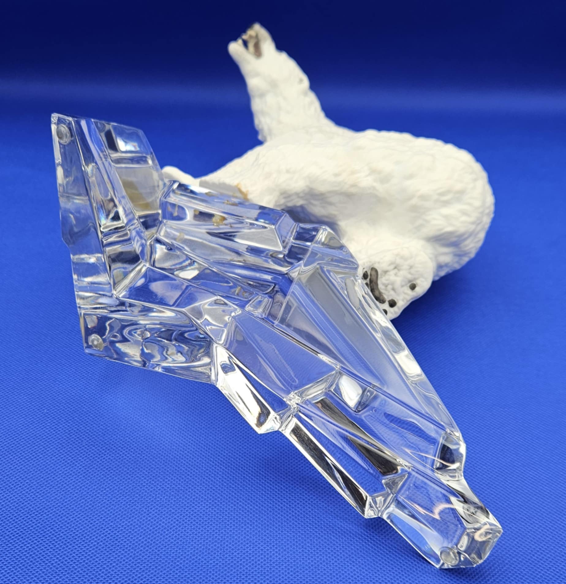Quality well crafted porcelain model of a polar bear sitting on a heavy crystal iceberg Made in Germany for Franklin Mint. Etched makers mark to the base and dated 1986.
