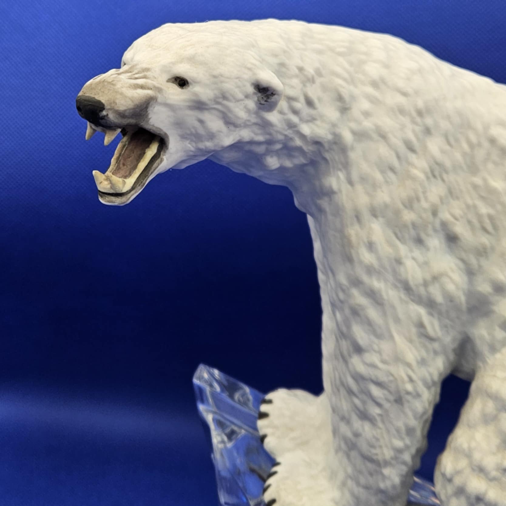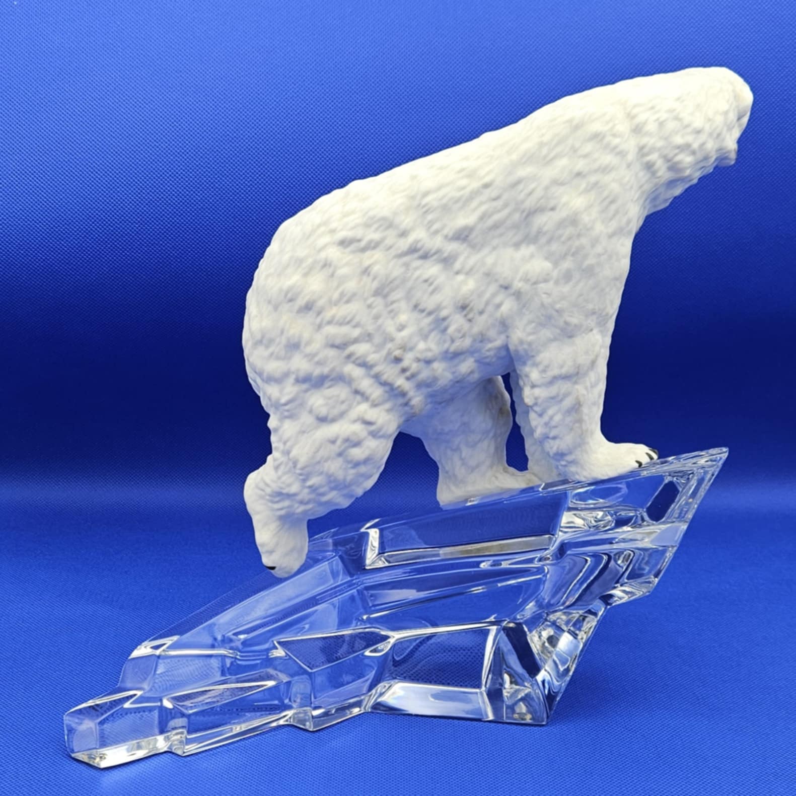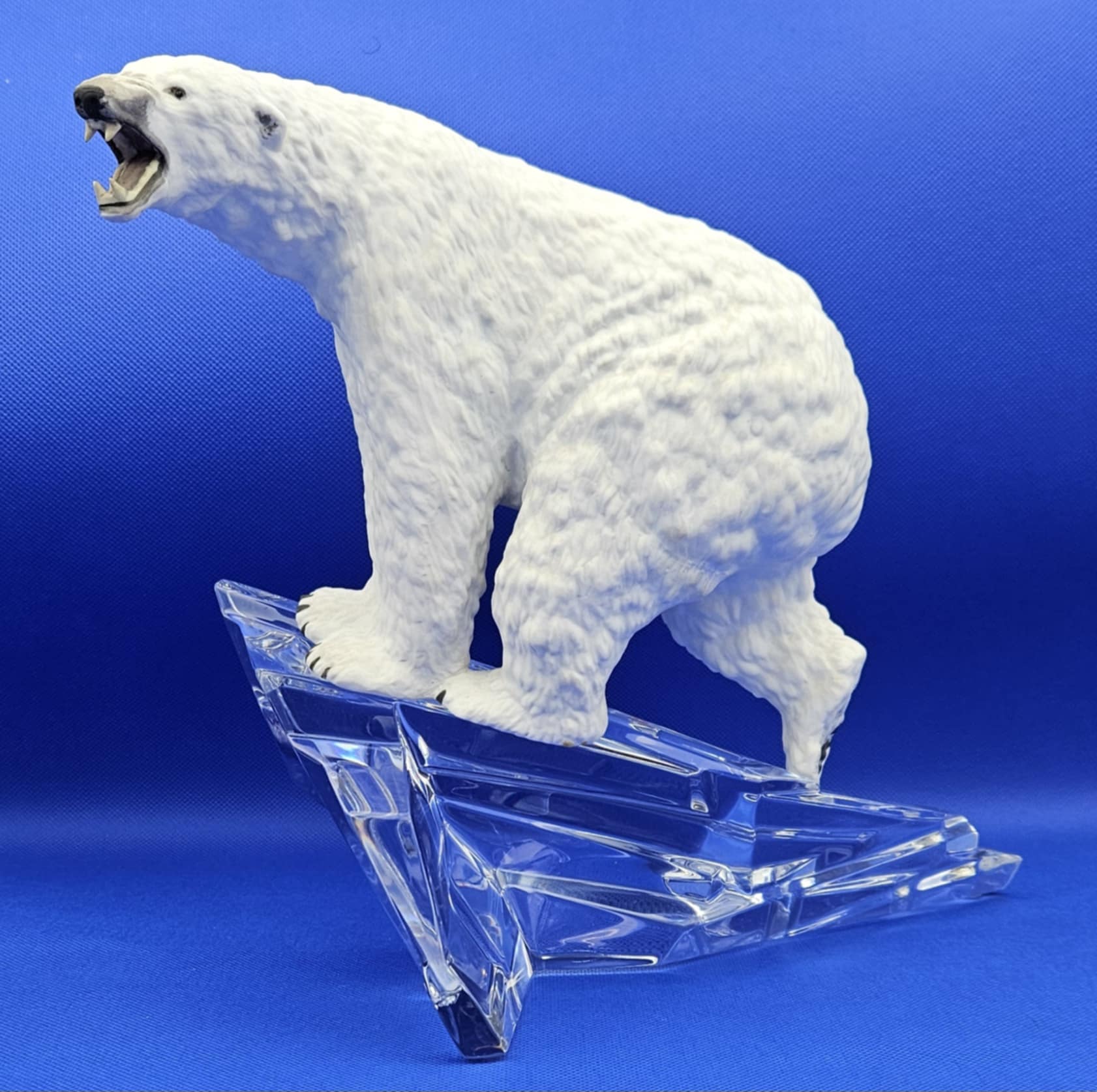 Quality well crafted porcelain model of a polar bear sitting on a heavy crystal iceberg Made in Germany for Franklin Mint. Etched makers mark to the base and dated 1986.
