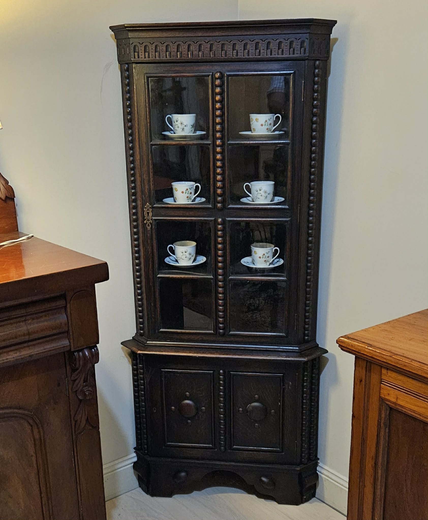 Tags: China cabinet, corner cabinet, Display cabinet, English Oak, Jacobean, Oak