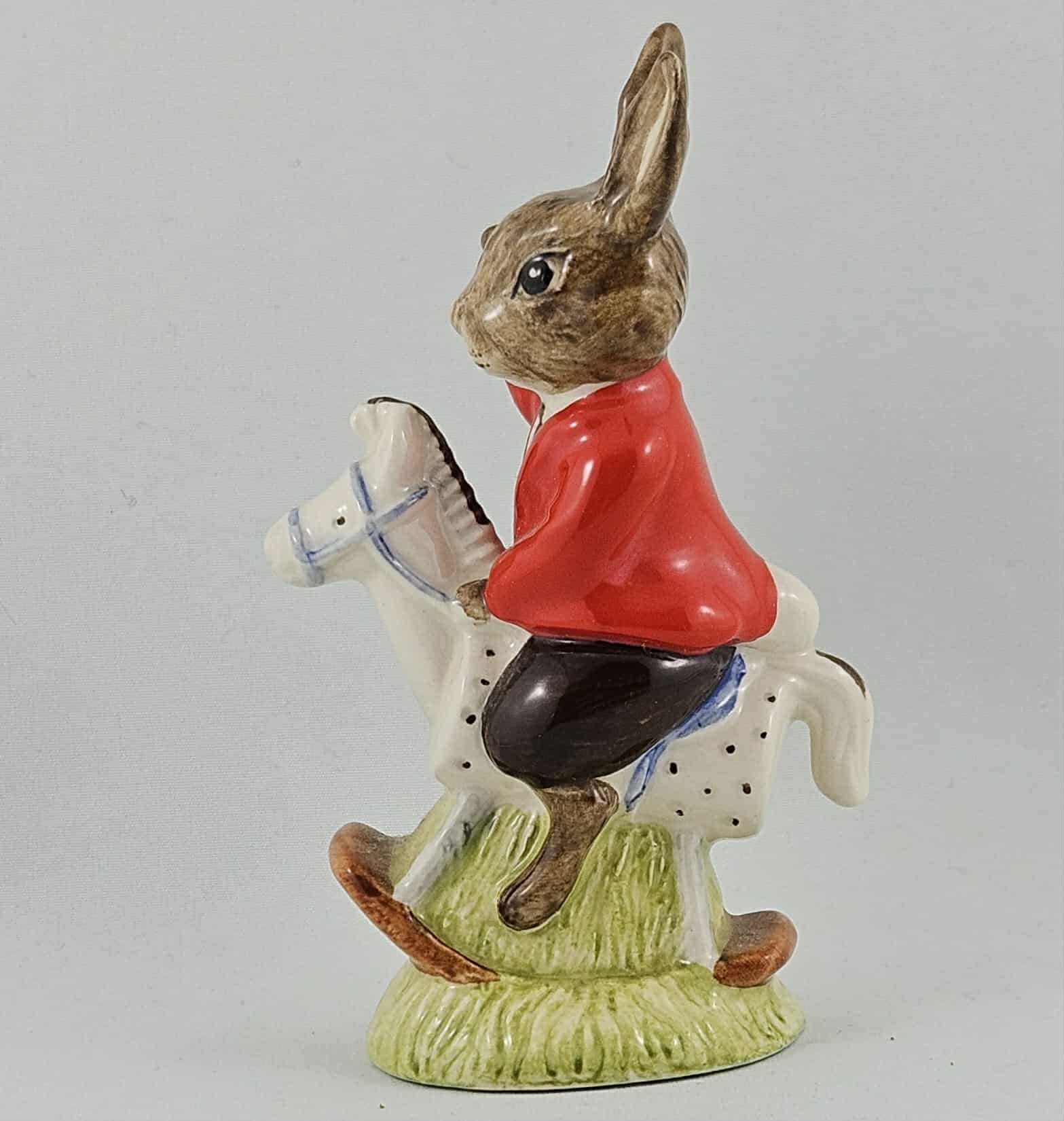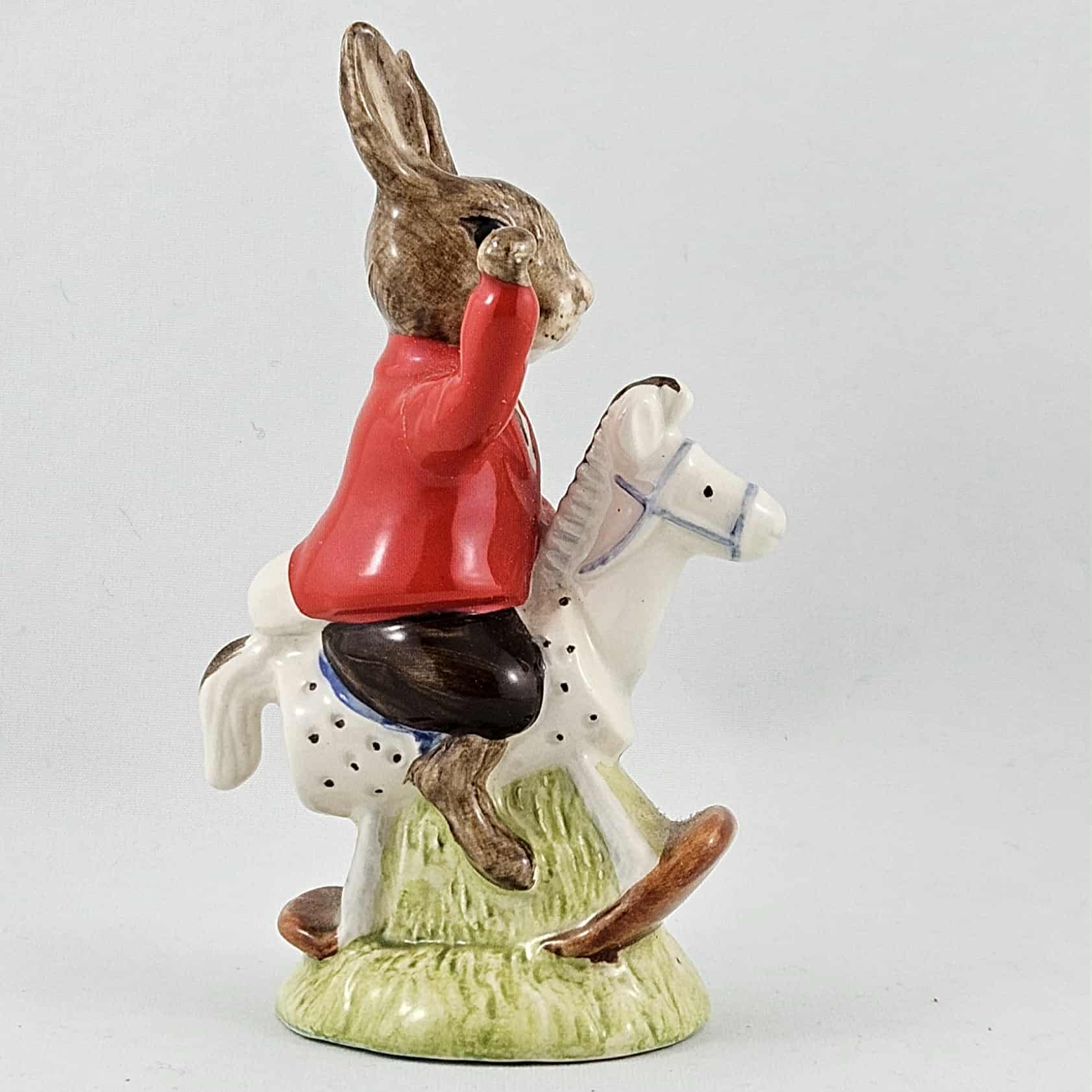 Royal Doulton Bunnykins figure DB69 William riding a rocking horse. Made in England.