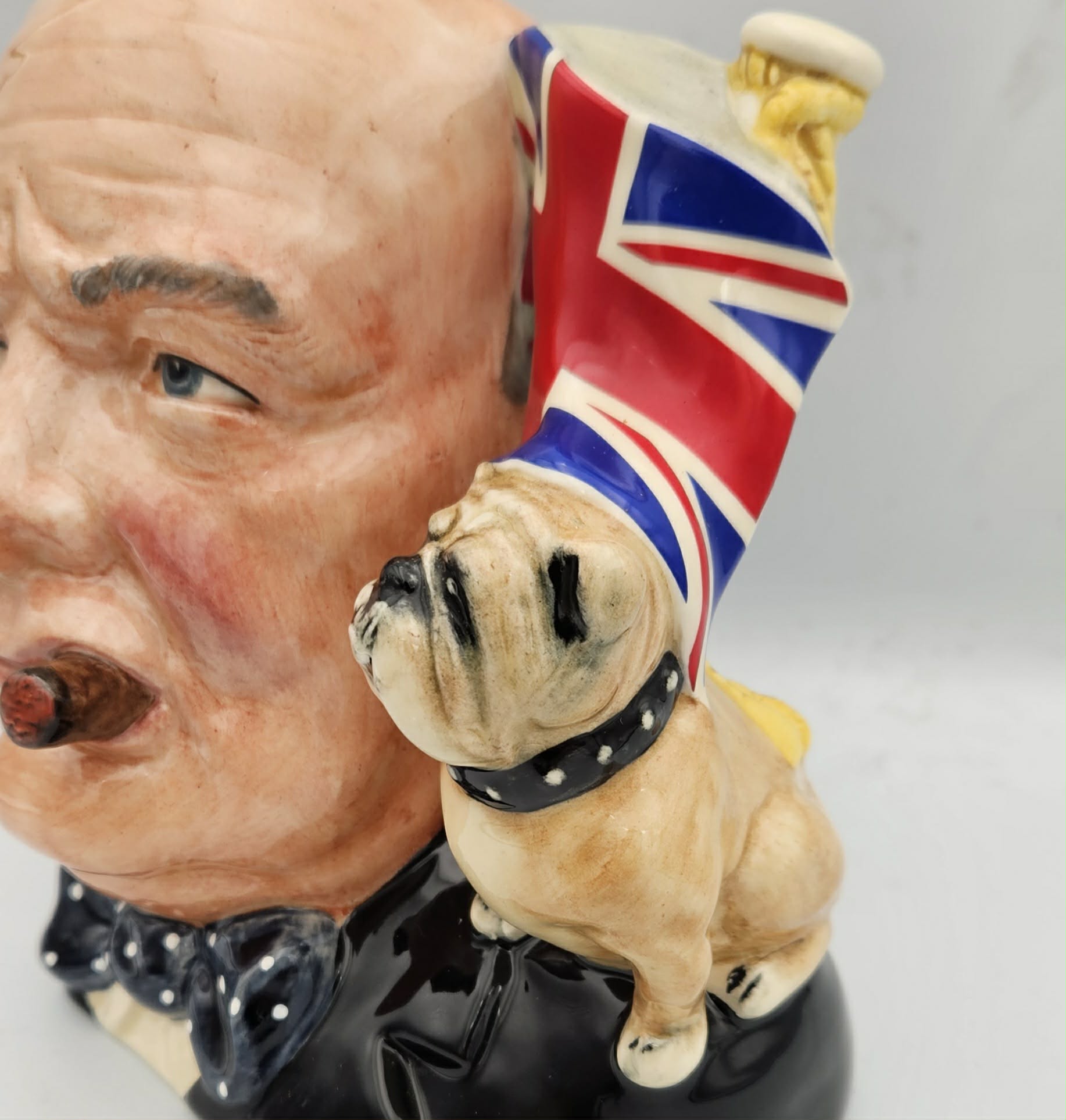 Tags: Bulldog, character jug, Made in England, political, Royal Doulton, Toby jug, Winston Churchill, WW2