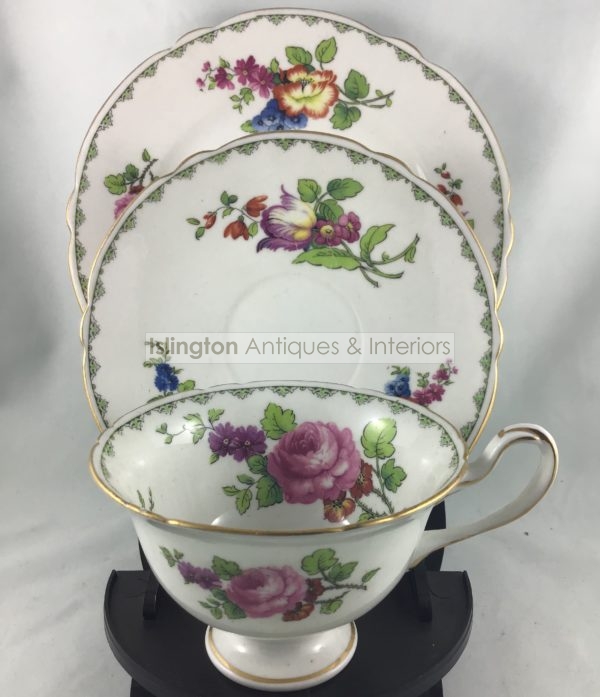 Early SHELLEY roses pattern Gainsborough shape cup saucer and plate set. Pattern number 10849