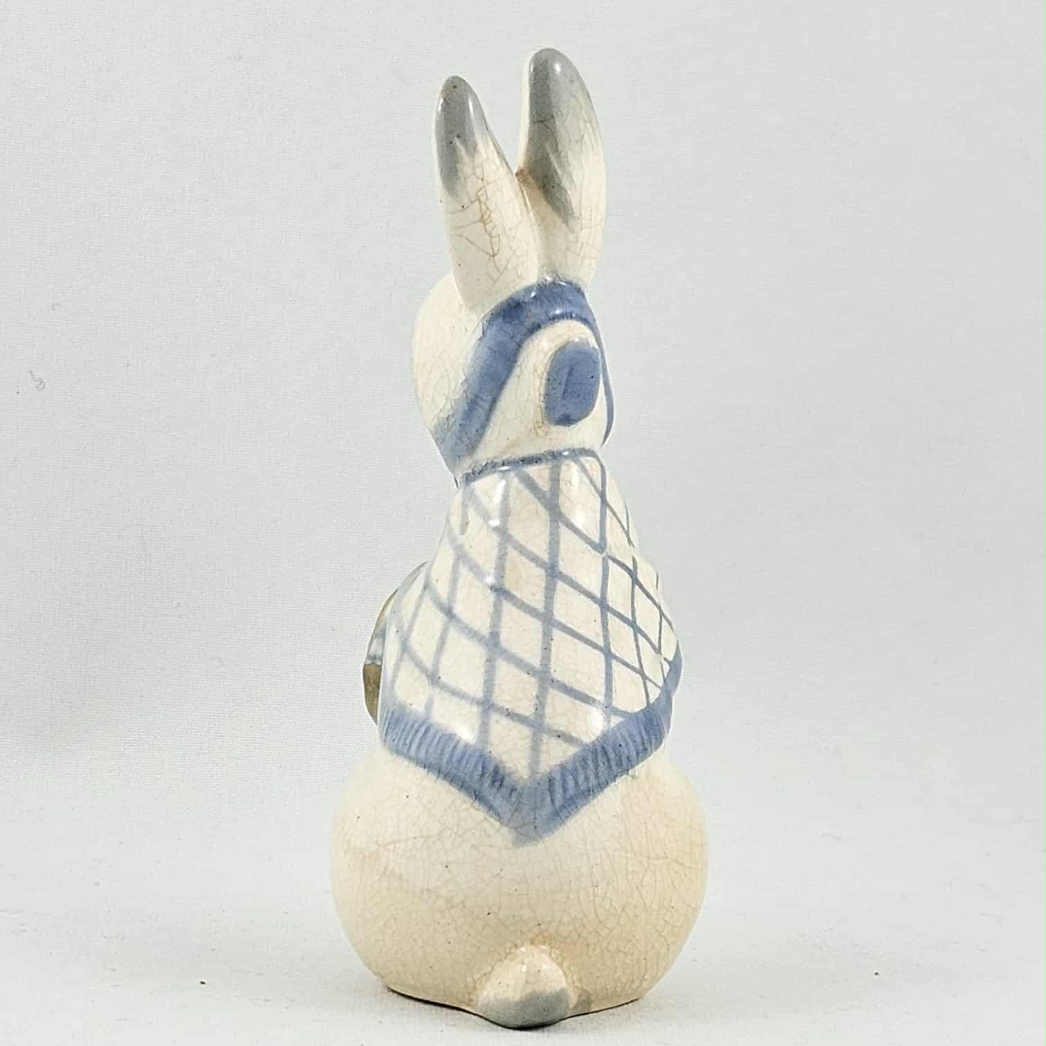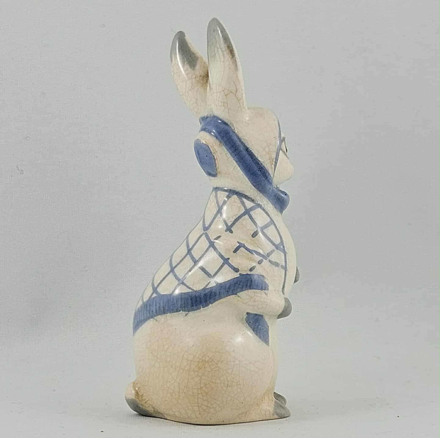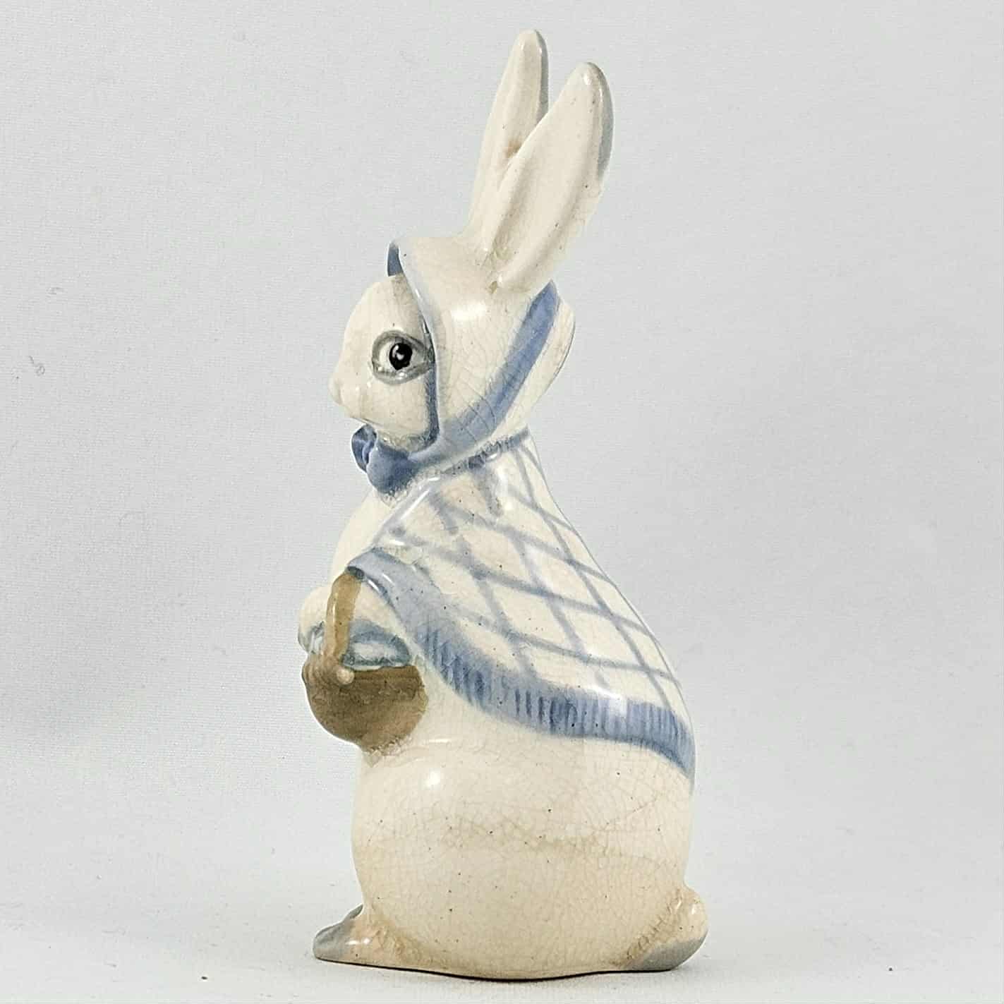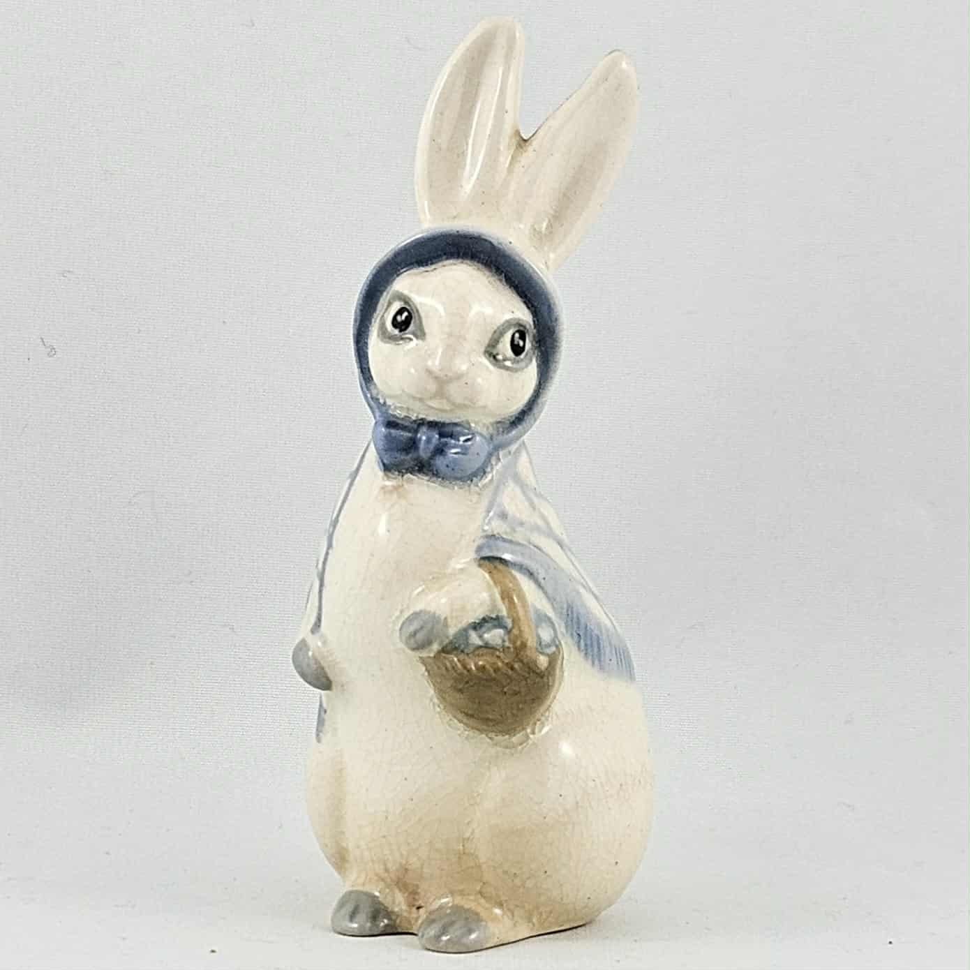 Wade pottery figure produced in England featuring Mrs Rabbit dressed up and wearing a bonnet & shawl, going shopping.